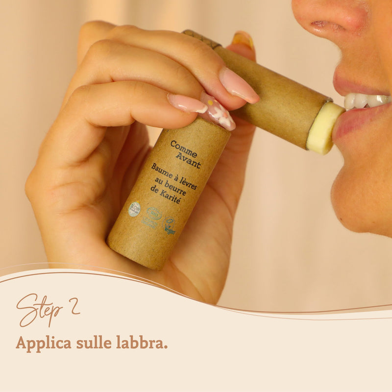 Il nostro balsamo labbra solido, prodotto in Francia e certificato bio, contiene solo 4 ingredienti: