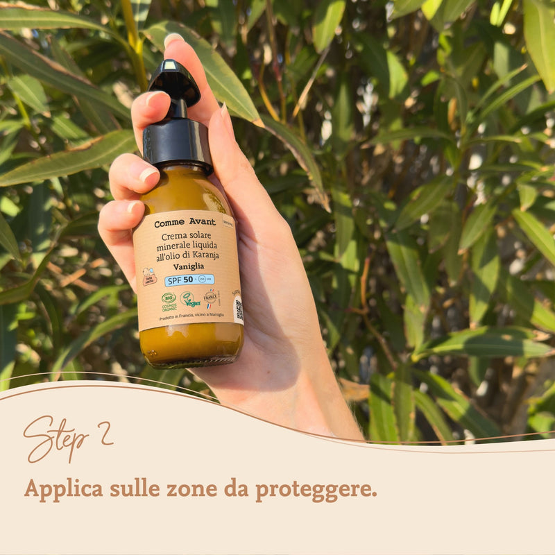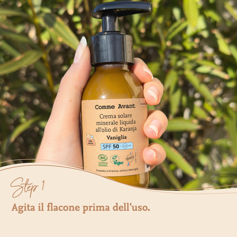 Crema solare minerale liquida SPF50 con olio di Karanja - Versione 1