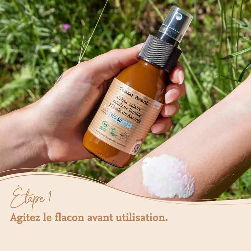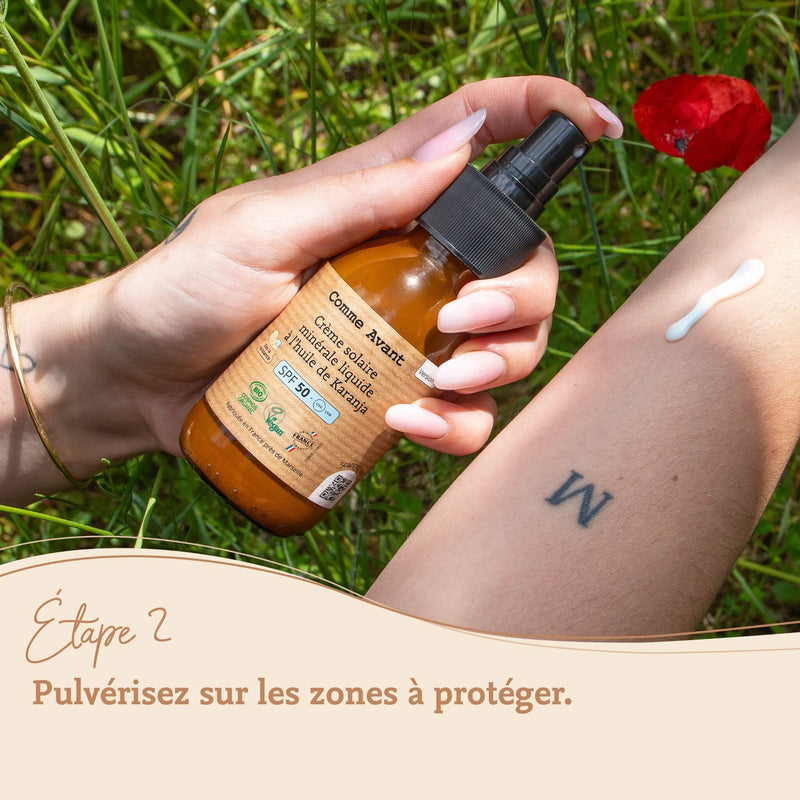 Crème solaire liquide spf50 à l'huile de karanja comme avant