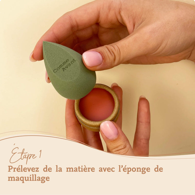 Pour conserver les performances de votre éponge blender, nettoyez-la régulièrement avec de l’eau tiède et un savon doux ou un shampoing solide naturel. Rincez-la soigneusement, puis laissez-la sécher complètement à l’air libre. Ne la rangez jamais humide dans un contenant fermé, afin d’éviter la prolifération de bactéries et de préserver sa durabilité.