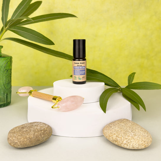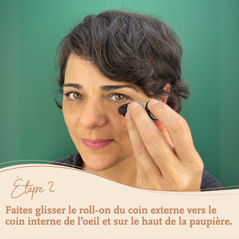 Présenté dans un flacon roll-on en verre ambré de 10 mL, avec une bille en acier inoxydable, il procure un effet frais immédiat à l’application, idéal le matin pour réveiller le regard.