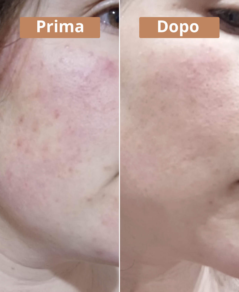- Zinco PCA: regola la produzione di sebo, riduce lucentezza e pori ostruiti. Ha proprietà antinfiammatorie e antimicrobiche, efficace contro brufoli e imperfezioni.