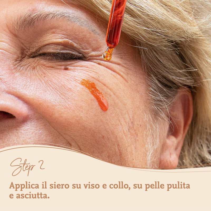 Con una composizione breve e sana, il nostro siero è formulato con ingredienti attivi altamente concentrati, escludendo tutto ciò che potrebbe risultare superfluo o controverso. La formula è certificata biologica COSMOS e Vegana.