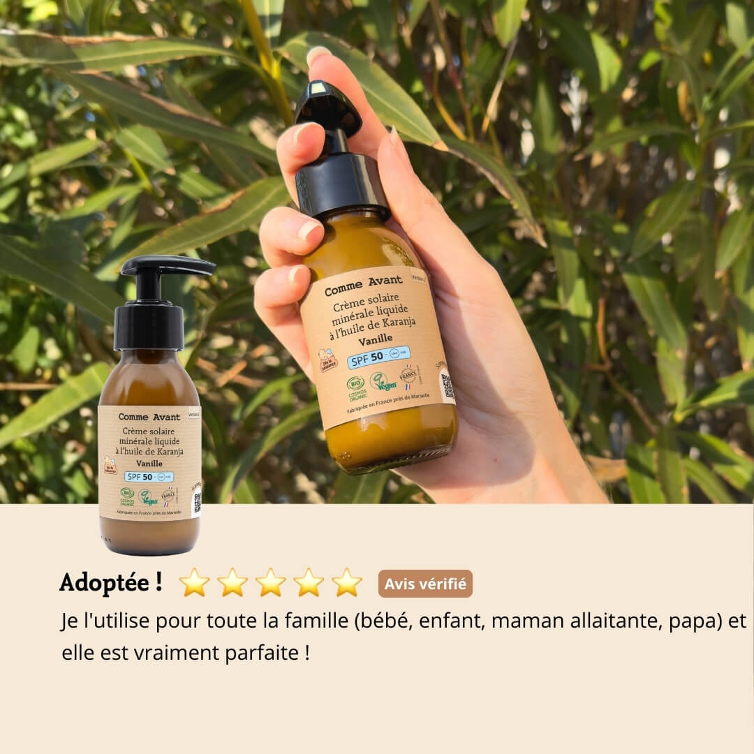 Crema solare minerale liquida SPF50 con olio di Karanja - Versione 2